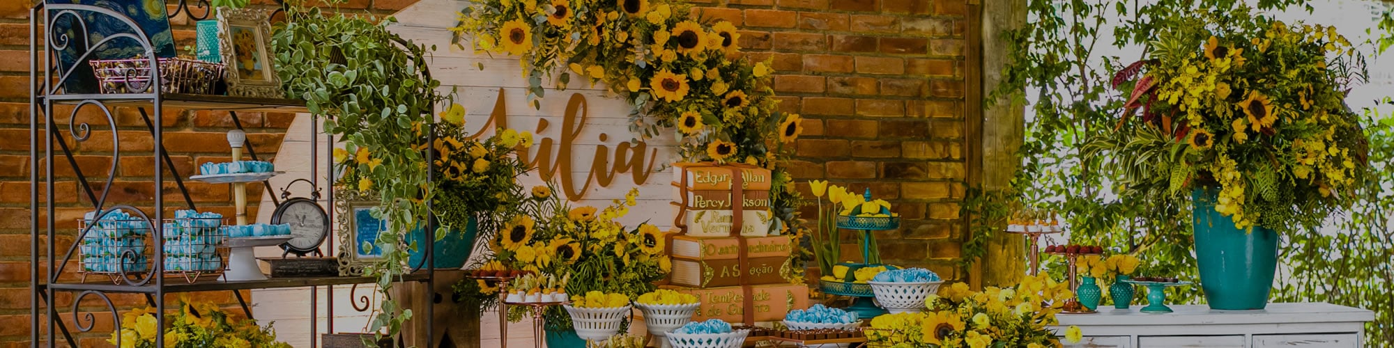 Sábado comemoramos os 15 anos da Júlia. Para uma apaixonada por livros e pelo pintor Van Gogh, mais do que “Doze girassóis numa jarra”, uma decoração cheia deles!!!